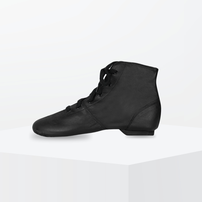 Soft leather jazz boots with laces. Excellent ankle support. Suede sole and heel for effortless pivoting and sliding for juniors.