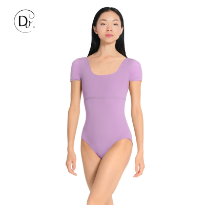 Leotard with mesh sleeves and a square back combines elegance and comfort for the dancers.