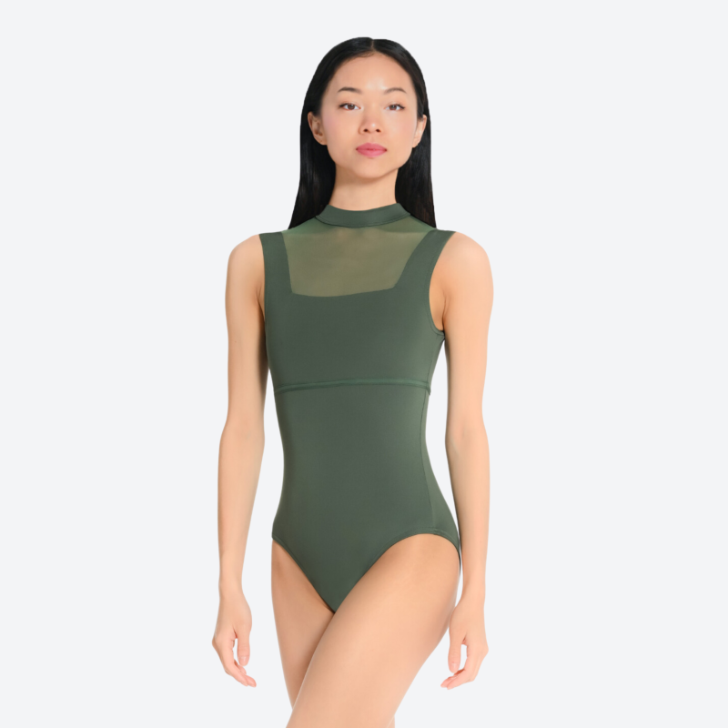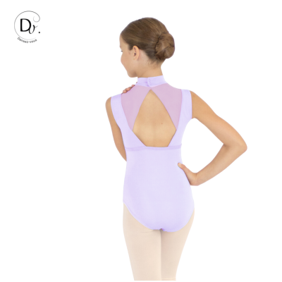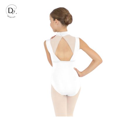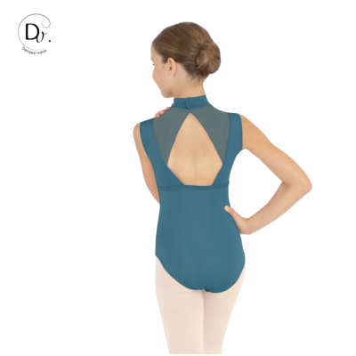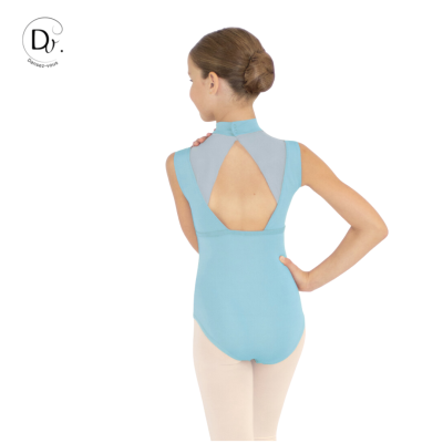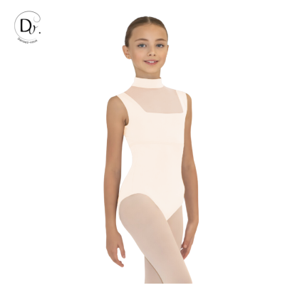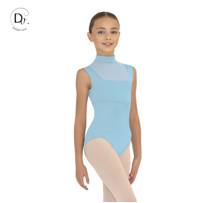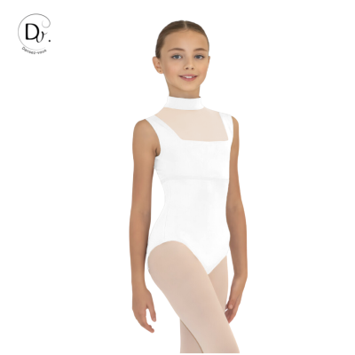 Leotard featuring wide straps and an officer's collar for added elegance and a flattering silhouette for junior dancers.