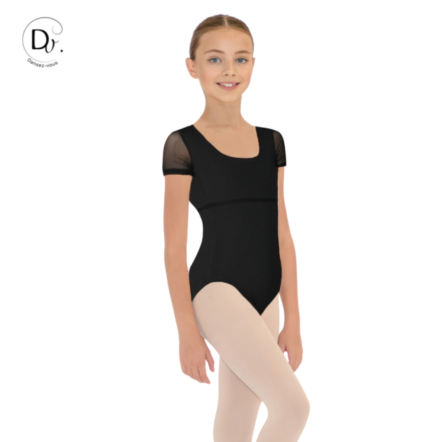 Leotard with mesh sleeves and a square back combines elegance and comfort for the juniors.