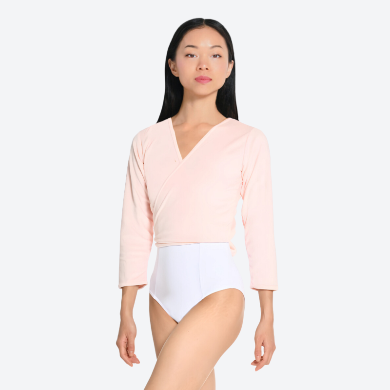 Cache-coeur à manches 3/4 en tissu extensible, extrêmement doux et chaud, à nouer. Parfait pour vos justaucorps et tuniques